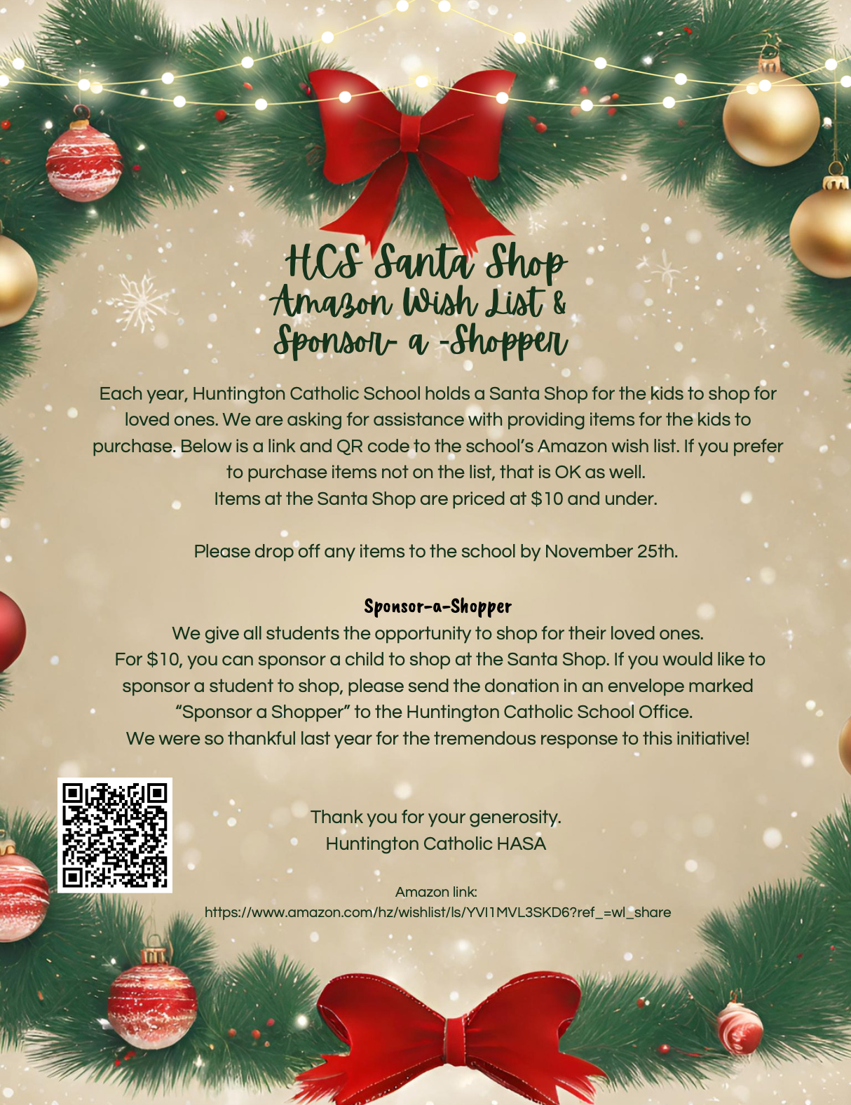 Our school’s Principal, Derek Boone, is available to answer questions and can assist with the donation process. dboone@huntingtoncatholic.org