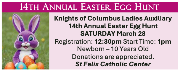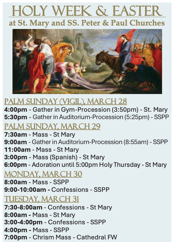 Coffee, Donuts t More at St. Mary... every 2nd Sunday of the Month. Gather and enjoy coffee & donuts with old & new friends on SUN, Mar. 8 after the 11:00am Mass in St. Mary’s Assumption Hall. This ministry is sponsored by the Knights of Columbus and hosted by various ministries of St. Mary & SSPP. Additional parking at McElhaney Funeral Home is available for these gatherings. All Are Welcome!