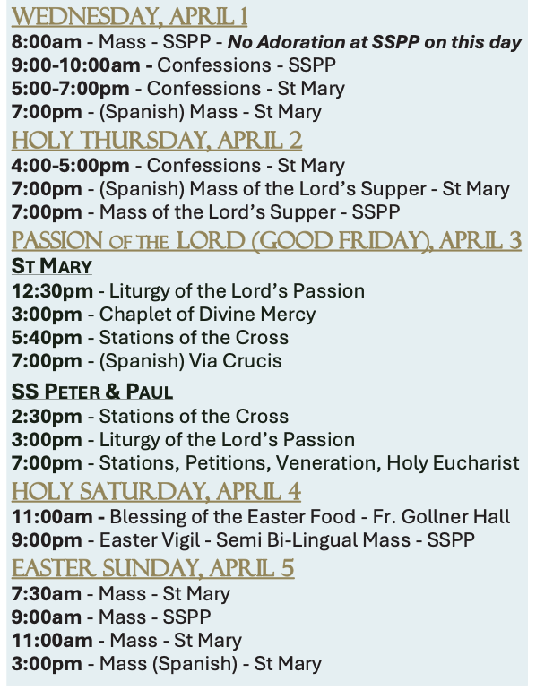 WED(SSPP) & FRI(St. Mary)